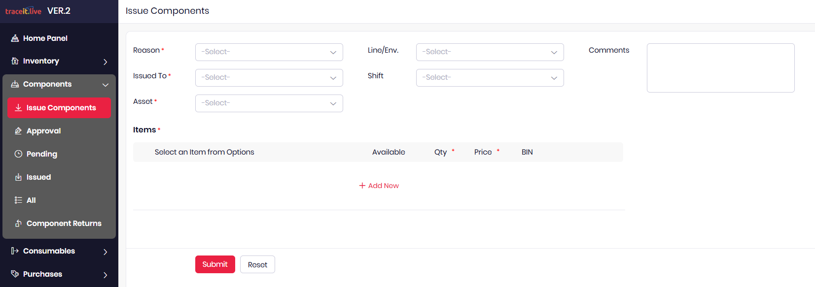 Step 4: In the Asset dropdown, select the machine which the requires the component.